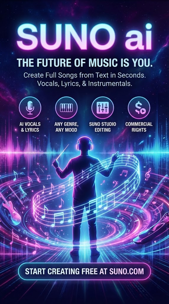 Suno AI ialah aplikasi AI menarik yang mendekatkan penciptaan muzik kepada semua orang, tidak kira latar belakang mereka. Pada asasnya Suno AI membolehkan pengguna menjana lagu penuh—lengkap dengan vokal, lirik dan instrumental—hanya dengan menerangkan perkara yang mereka inginkan dalam teks ringkas.